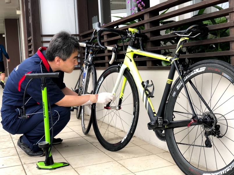 一大早上,當地白河市觀光課課長充當嚮導已經來到飯店等待大家 、技師與領騎人員也已經在確認調整車況 、打氣並忙幫裝水,為今日得騎行做最完善的準備。